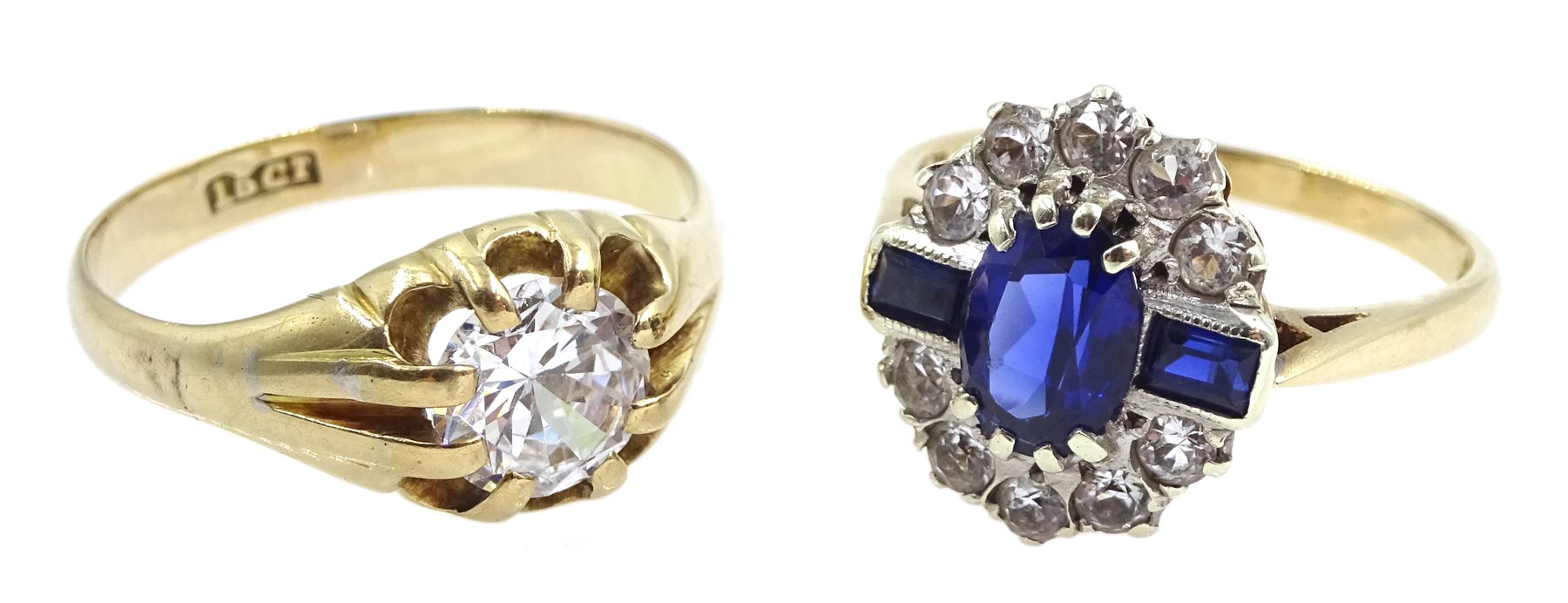 9ct gold cubic zirconia and synthetic sapphire dress ring stamped and a 13ct gold gentleman's