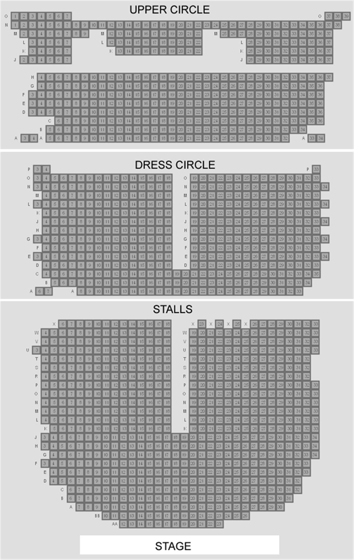 Stalls Guide. The Stalls is the largest seating section in the theatre, with an aisle running half the length of the auditorium. Rows average around 34 seats wide, with the ends of the rows providing more restricted views than those towards the centre. Seats are comfortable but there is limited legroom, particularly towards the front.