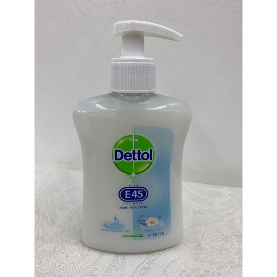 1-48 of 95 results for "dettol e45 hand wash" Results. Check each product page for other buying options. Price and other details may vary based on product size and colour. Amazon's Choice for "dettol e45 hand wash" Dettol. Camomile Hand Soap 250ml - Pack of 6. 4.7 out of 5 stars 683.