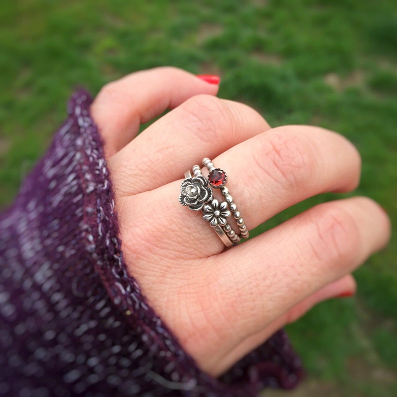 Silver Rose Ring Sterling Stacking Ring Rose bud ring Etsy