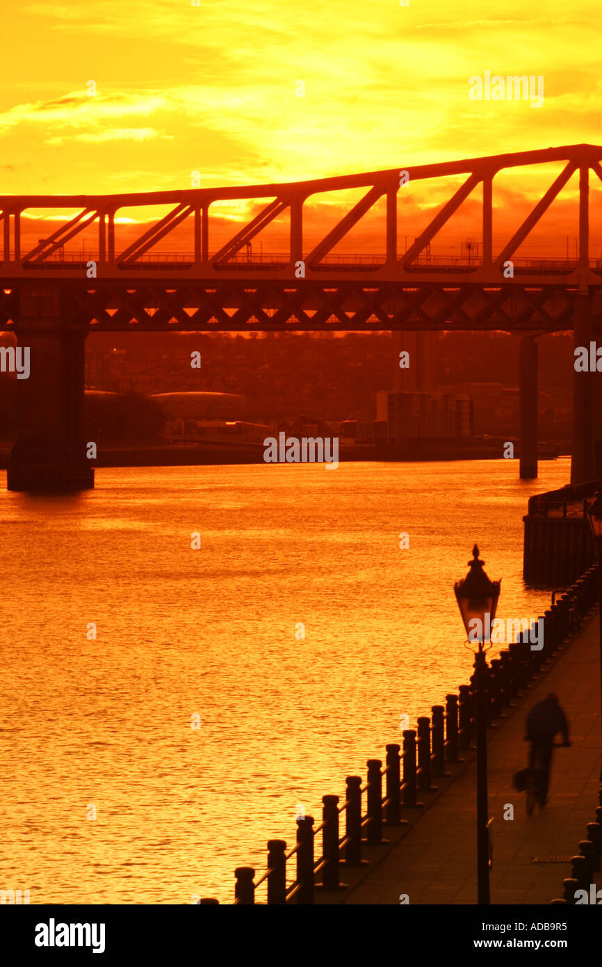 Train crossing the Tyne King Edward Bridge sunset Newcastle upon Tyne Stock Photo Alamy