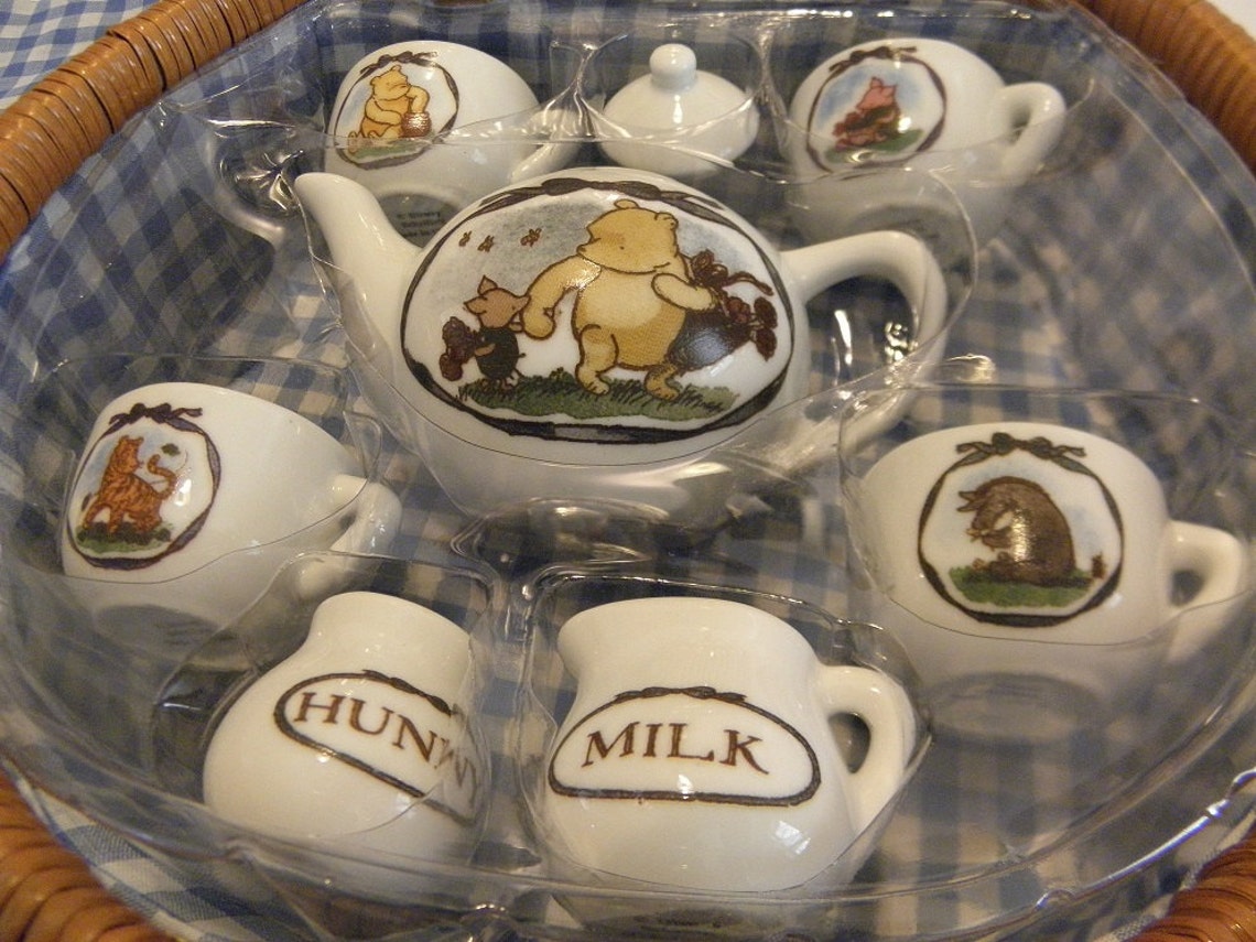 Best Winnie the Pooh Tea Set 1. Tobar 17-piece Mini Teddy Bear Tea Set. Host a teddy bears picnic with these cute mini tea sets. There are bear-themed cups, saucers, bowls, cutlery, and even a teapot, all made for teddy bears. It is a small basket that is easy to bring, good for taking picnics, but may not be suitable for camping trips.